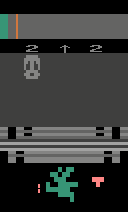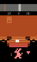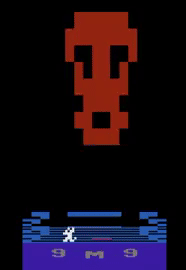 Shown to mouse's immediate right is the Target Colour 'T'. When your mouse matches this (or has matched at least once, whilst latched at least one body segment in this cycle), you gain access to a Battle Arena. This is indicated beneath LHS digit up top as a blinking head, the Realm's current monster.
